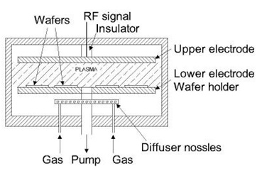 در این روش سطح لایه نشانی شده در محفظه ای شامل چند گاز واکنش دهنده قرار می گیرد. گاز های موجود از طریق یک منبع RF (موج الکترومغناطیسی با فرکانس رادیویی) یونیزه می شوند و به سمت سطح شتاب داده می شوند. ترکیب این گازها ترکیب شیمیایی جدیدی را ایجاد می کند که باعث اچینگ شیمیایی سطح می شود. اما در این روش، اچینگ به صورت فیزیکی هم صورت می گیرد. فرآیندی شبیه به لایه نشانی به روش کندوپاش یا اسپاترینگ. یون های گازی که خود دارای انرژی جنبشی کافی هستند با برخورد مستقیم به سطح لایه عمل اچینگ را بدون یک واکنش شیمیایی و به صورت فیزیکی انجام می دهند. این یک فرآیند بسیار پیچیده است تا بتوان اچینگ شیمیایی و فیزیکی را به تعادل رساند زیرا پارامتر های زیادی در ایجاد این تعادل نقش دارند. از آنجا که بخش شیمیایی، اچینگ همسانگرد ایجاد می کند و بخش فیزیکی آن اچینگی به شدت ناهمسانگرد، با تعادل این دو روش می توان اچینگی از حالت گرد تا دیواره عمودی ایجاد کرد. در شکل زیر نمای شماتیکی از این روش را می بینید.