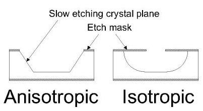 این تکنولوژی زمانی به نتیجه مناسب می انجامد که ترکیب مناسبی از ماسک و حلال برای کاربرد مورد نظرتان پیدا کنید. یکی از مشکلات این روش در اچینگ همسانگرد بروز زیر-برش (Undercutting) یا خورده شدن ماده زیر ماسک است. در اچینگ ناهمسانگرد عمل خورده شدن در جایی متوقف شده و از ایجاد زیر-برش جلوگیری می شود اما خوردگی آن عمود بر سطح نیست و همانطور که گفته شد به صورت مایل و هرمی شکل است. همچنین باید توجه داشت اگر برش های مورد نظر شما توسط عمل اچینگ از مرتبه ضخامت لایه است در اچینگ همسانگرد به دلیل بروز زیر-برش دچار مشکل خواهید شد و عمل اچینگ با دقت خوبی انجام نخواهد شد و لازم است از روش اچینگ خشک استفاده کنید.